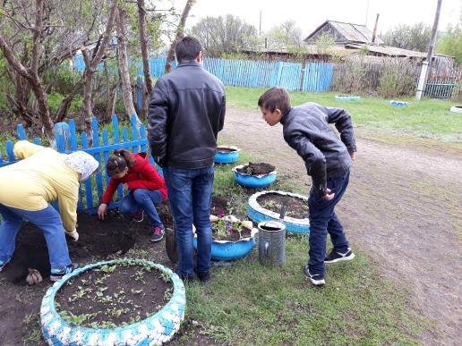 на пришкольном участке; высаживают цветы, следят за чистотой школьного сада.