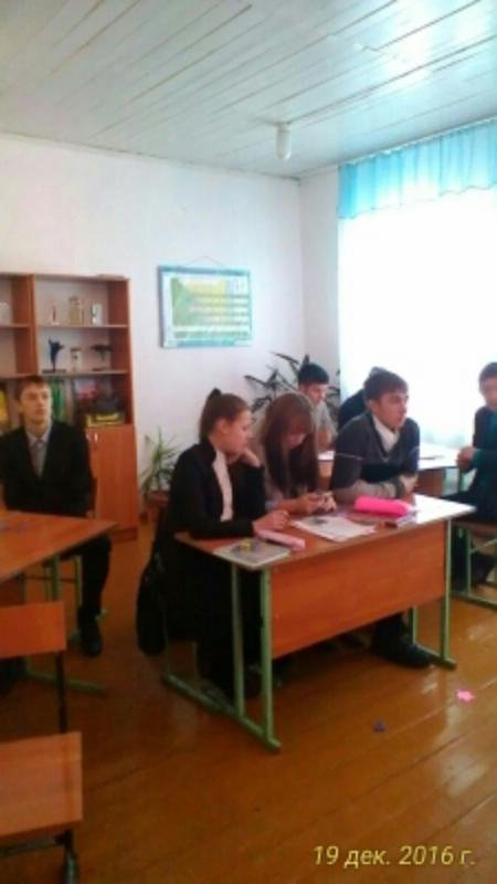 Математика, физика, химия әдістемелік аптасының шеңберінде 19 желтоқсанда 9 сыныпта ОЖСБ-ға оқушыларды дайындау бойынша сыныптан тыс іс-шара өтті. Мұғалімі – О.Ф.Андреева. Сынып 3 топқа бөлінді. Сабақ «Өз ойыны» принципі бойынша ойын нысанында өтті, бұнда 9 сыныптың физика курсы бойынша тараптар санаттары ұсынылды. Оқушылар санат және сұрақ құнын таңдады. Ең белсенді қатысушылар болған Некрасов Д. Шестернина И., Васильева Т. Іс-шара барысында оқушылар пән бойынша бірінші жартыжылдықтың негізгі ұғымдарын қайталады.